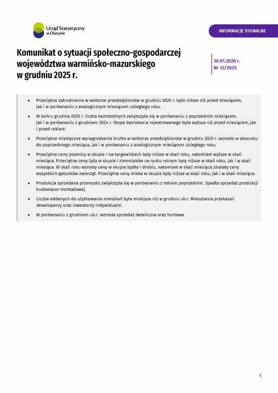 Komunikat o sytuacji społeczno-gospodarczej województwa warmińsko-mazurskiego w grudniu 2025 r.