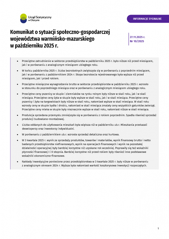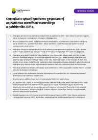 Komunikat o sytuacji społeczno-gospodarczej województwa warmińsko-mazurskiego w październiku 2025 r.